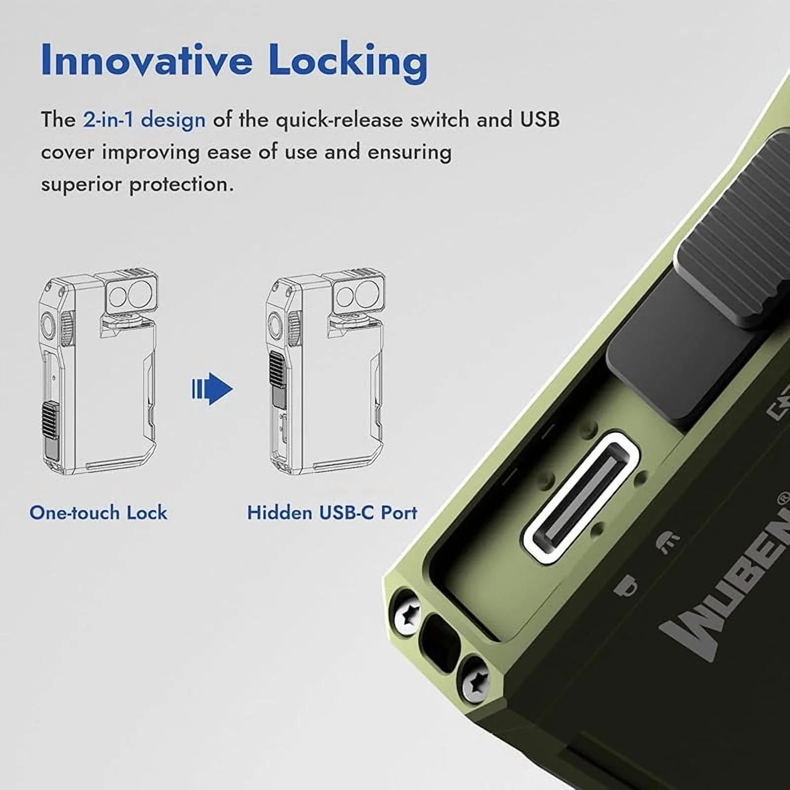 Pequeña linterna equipada con innovaciones como clip bidireccional, cabezal giratorio y atractivos colores RGB que se ajustan mediante una rueda de control. Incluye tapa de carga USB-C robusta que también actúa como bloqueo de seguridad. Además, cuenta con un imán funcional que se fija fácilmente a superficies metálicas. Es sorprendentemente potente para su tamaño, con un cuerpo de aluminio de gran calidad. Excelente trabajo por parte de Wuben.